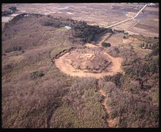 海保大塚(古墳を改変した珍しい形状の海保地区の出羽三山供養塚 1989年空撮)