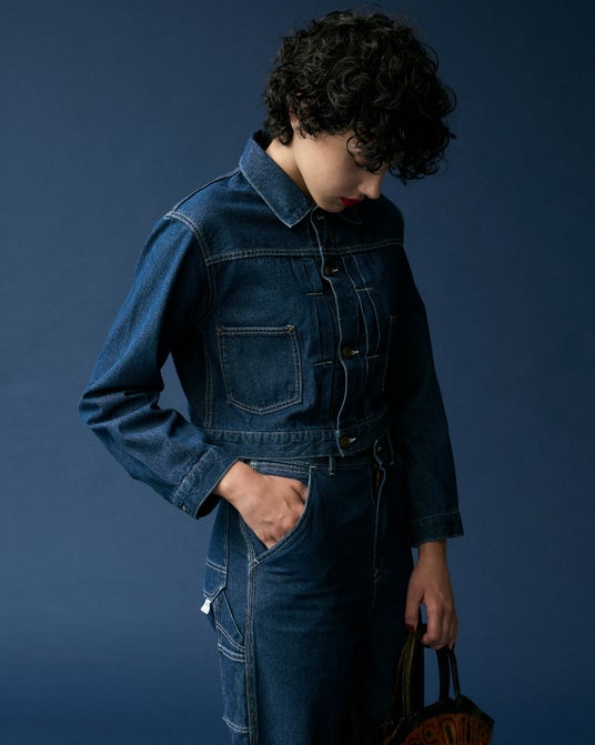 オリジナルの無骨なワークウェアのディテールを残しながら、クロップド丈に設定されたボディラインが、女性らしいシルエットでウエストを美しく強調しスタイルアップ効果を演出。程よくフィットしたサイズ感でありながら、肩回りには適度なゆとりを持たせ、動きやすさと女性らしい華奢さを両立。