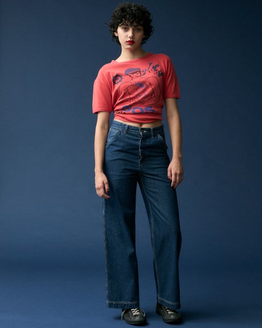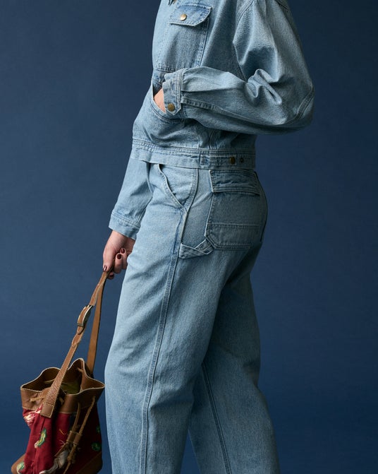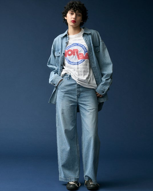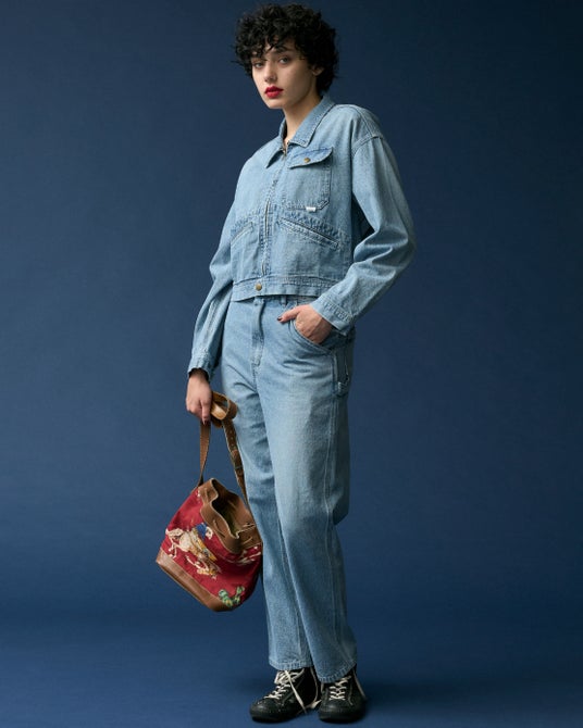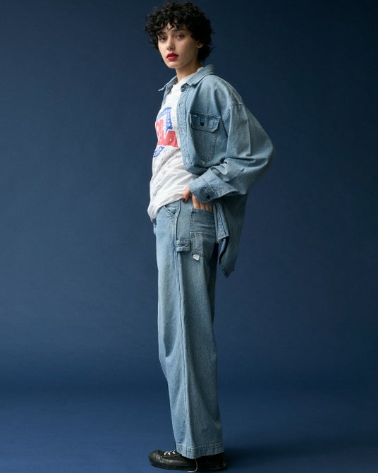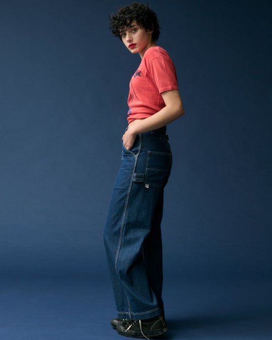 オリジナルのシンチバック付きペインターパンツをベースに裾まで太いワイドシルエットを採用し、よりゆったりとしたフォルムに仕上げる。機能的な多数のポケットやシンチバックなど、ワークウェアディテールは踏襲しつつ、現代女性のために再構築したデニムパンツ。