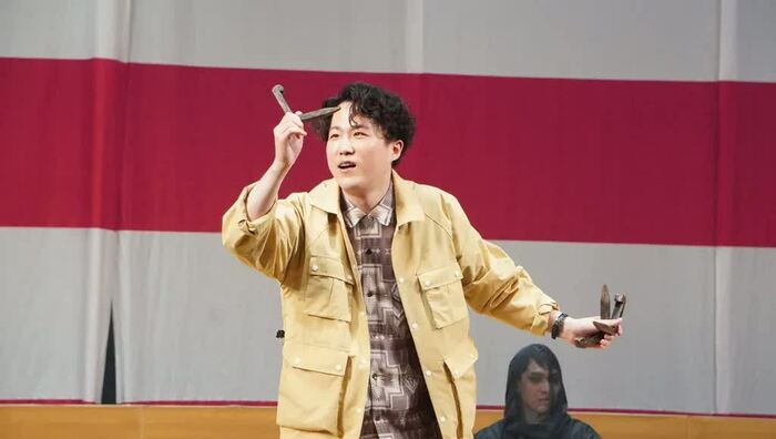 中でも「大鶴さんが、側転をして驚かせてくれたり、よくティラノザウルス(のような動き)になってた」と明かすと、大鶴さんは「でも(稽古の時点で)封印されちゃいました」と補足し、笑いが起きました。