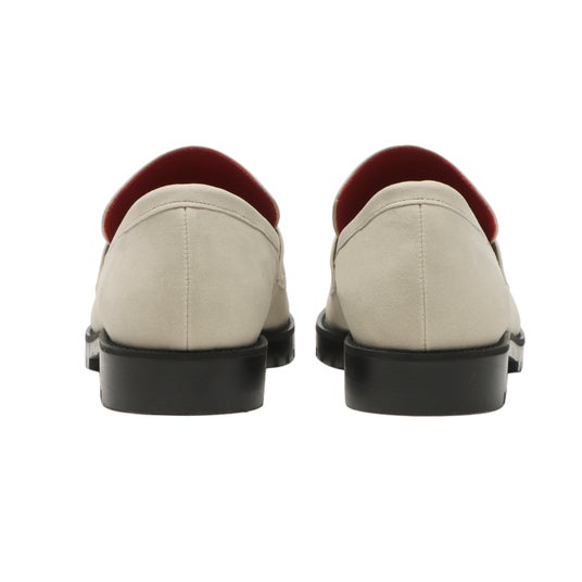 柔らかな印象をもたらす丸みのあるシルエットに、スエードの質感とラグソールの程よいボリュームが加わり、足元に確かな存在感をプラスします。さらに、スニーカーのようなクッション性とライニングのソフトな素材使いで、長時間の歩行でも快適な履き心地を実現しました。ディテールにも”ファッションを楽しんでほしい“というブランドの願いを込め、ストライプ柄のテープや鮮やかなレッドインソールを採用。見えない部分にまで宿るこだわりが、日常のスタイルをさりげなく格上げします。カラーは、洗練された印象を与える「Fog Black」と、装いに抜け感を与える「Milk White」の2色展開。