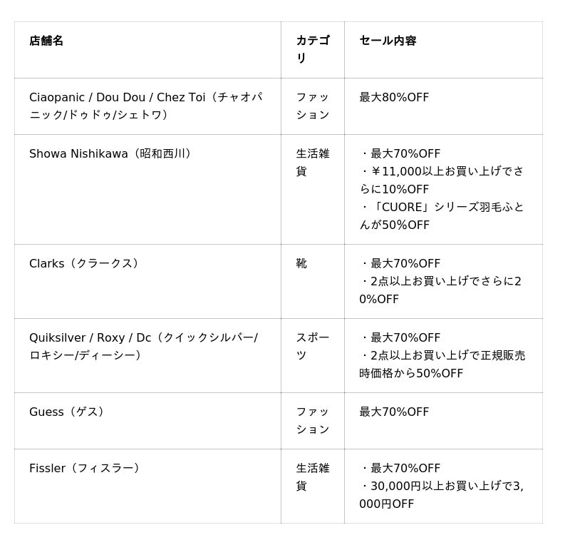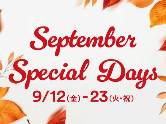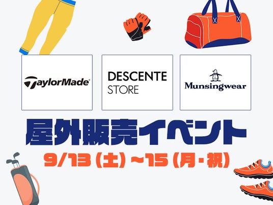 また、9月12日(金)~23日(火・祝)の12日間は、お得なセール「September Special Days」を開催。人気ブランドの商品を幅広いラインナップでご用意します。涼しい季節に向けて揃えたいアウターから、インナーウェア、秋の食卓を彩るキッチンアイテムなど、秋に向けた商品をいち早くお得にお買い求めいただけます。9月13日(土)~15日(月・祝)の3日間は、人気のゴルフブランド「TaylorMade(テーラーメイド)」「Descente Store(デサントストア)」「Munsingwear(マンシングウェア)」による屋外催事販売も開催し、30%~70%OFFのお得な価格のアイテムを販売します。