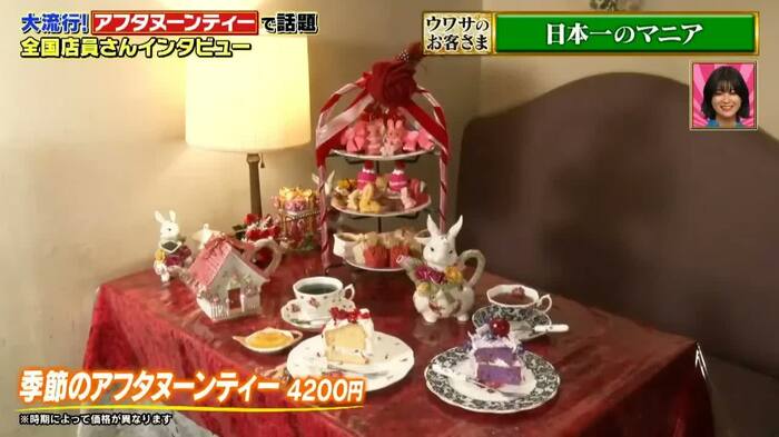 番組では、週4回以上アフタヌーンティーを楽しむという“日本一のアフタヌーンティーマニア”青木美沙子さんに密着取材を敢行。さらに、青木さんによる<日本一のマニア厳選!いま行きたい大人気アフタヌーンティー>が紹介されました。
