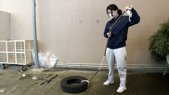 独り立ちを控えた“タイヤ好き”のフーヒンのために、吉田さんはタイヤを使ったプレゼントを作成。