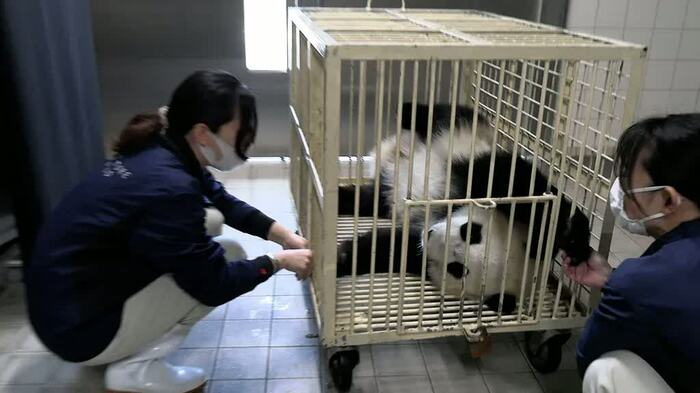 かわいい見た目でもパンダは、クマの仲間であるため、ときに凶暴になることも。そのため、飼育作業は2人以上で行います。