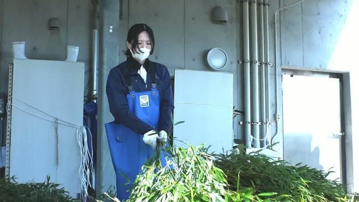 吉田さんは、その竹を1本1本水洗いし、茎の細さや葉つきによってパンダ用と他の動物用に選別。