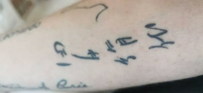 続けて、「対談してみたい日本人監督や俳優は?」との質問には、俳優であり監督でもあった田中絹代さんの名前を推挙。そして、「田中さんの名前を腕に掘るほど好きです」と自身の腕に掘ったタトゥーを紹介。