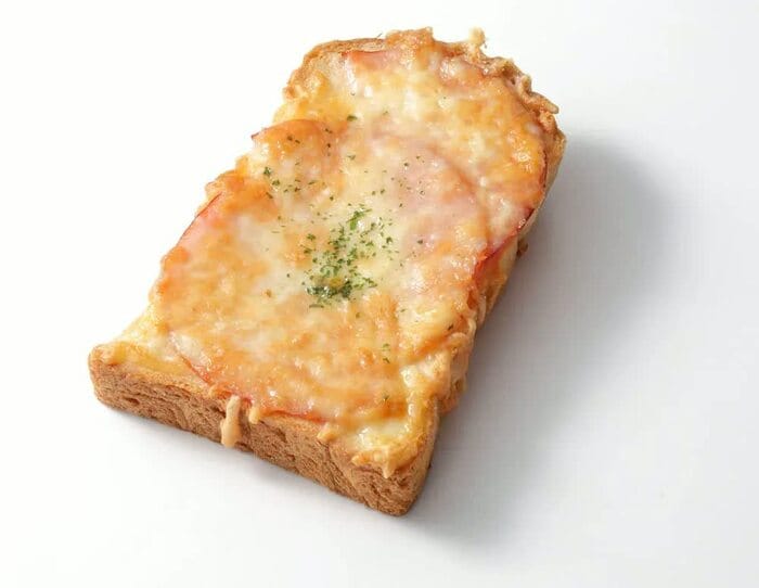 ロースハムとベシャメルソース、チーズをトッピングしてトースト。温めて食べるとさらにカリッとした食感が楽しめる。