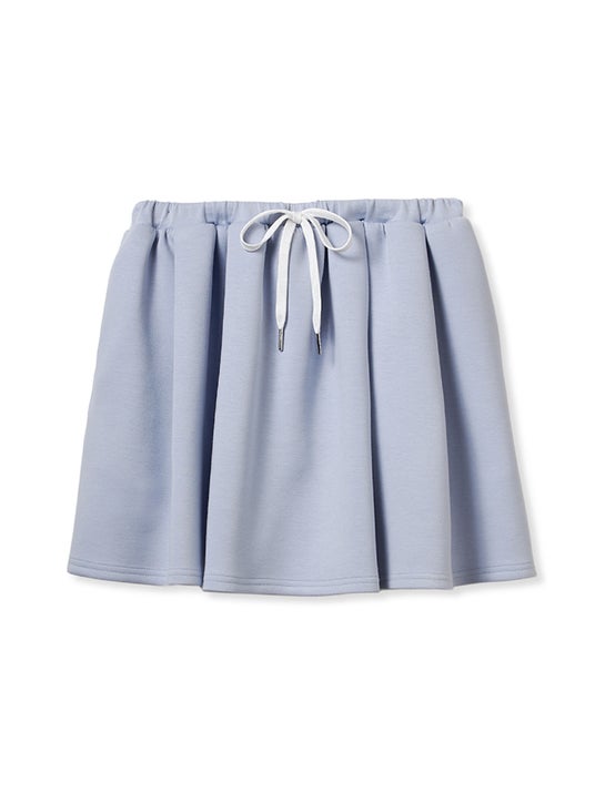 タック&ギャザーでボリューム感のあるシルエットが特徴の、ダンボール素材のフレアミニスカート。シンプルながらも配色のウエストリボンがアクセントになっています。