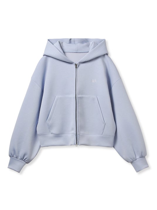 大きめのフーディーとパフスリーブのシルエットでリラックス感のある着心地。