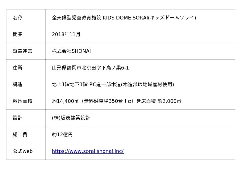 株式会社SHONAI(本社:山形県鶴岡市、代表取締役:山中大介、以下、当社)は、当社が建設/運営する全天候型児童教育施設「キッズドーム ソライ」(以下、ソライ)において、鶴岡市の子どもを対象に、大人1名につき子ども3人までが無料で施設を利用できる新制度を導入すること(開始日:2025年10月4日(土)~)を決定しました。