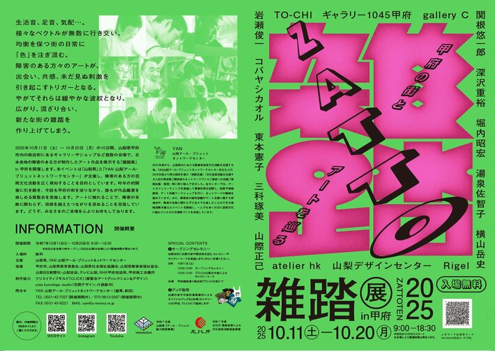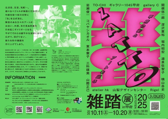 山梨県(知事 長崎幸太郎)は、県内外の障害のある方が制作した芸術上価値の高い作品を集めた企画展「甲府の街とアートを巡る『雑踏展』2025」(以下、雑踏展)を、10月11日(土)から開催します。