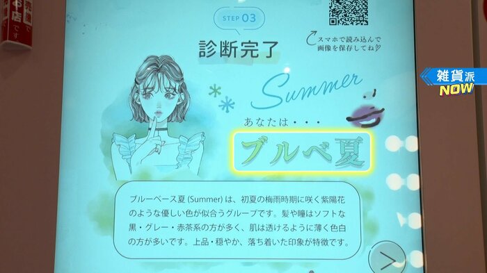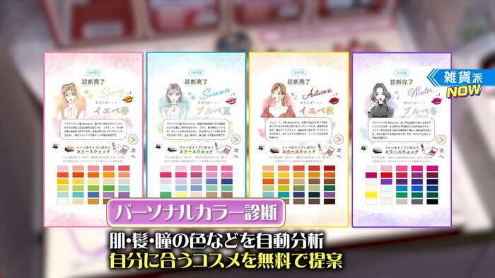 肌や髪、瞳の色などを自動分析し、「ブルーベース」と「イエローベース」のタイプに分類。
