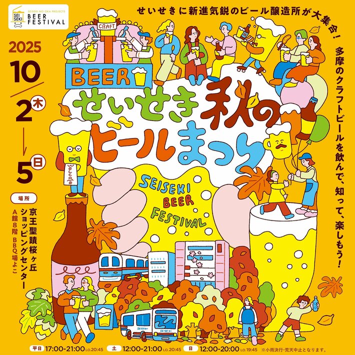 株式会社京王SCクリエイション(本社:東京都多摩市、取締役社長:小堺 健司)は、10月2日(木)から10月5日(日)の4日間、京王聖蹟桜ヶ丘ショッピングセンター(以下、せいせき)にて「せいせき秋のビールまつり(以下、本イベント)」を開催します。