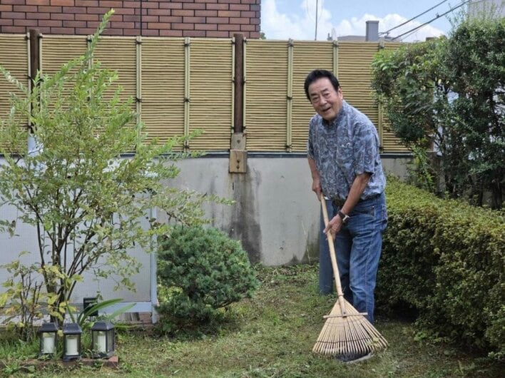 高橋英樹 熊手片手に庭の草刈りショットを公開