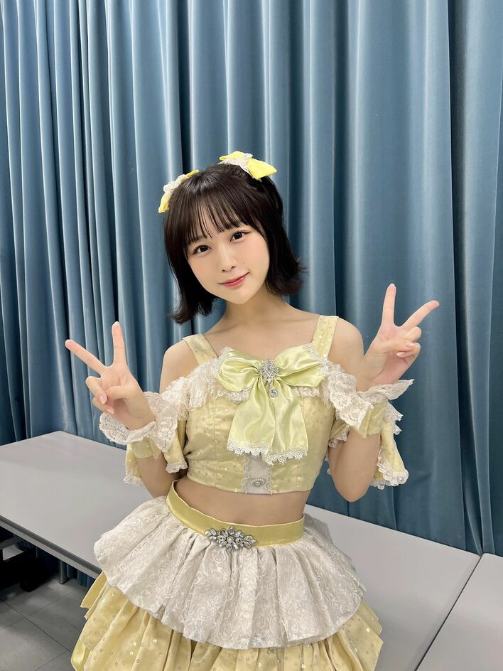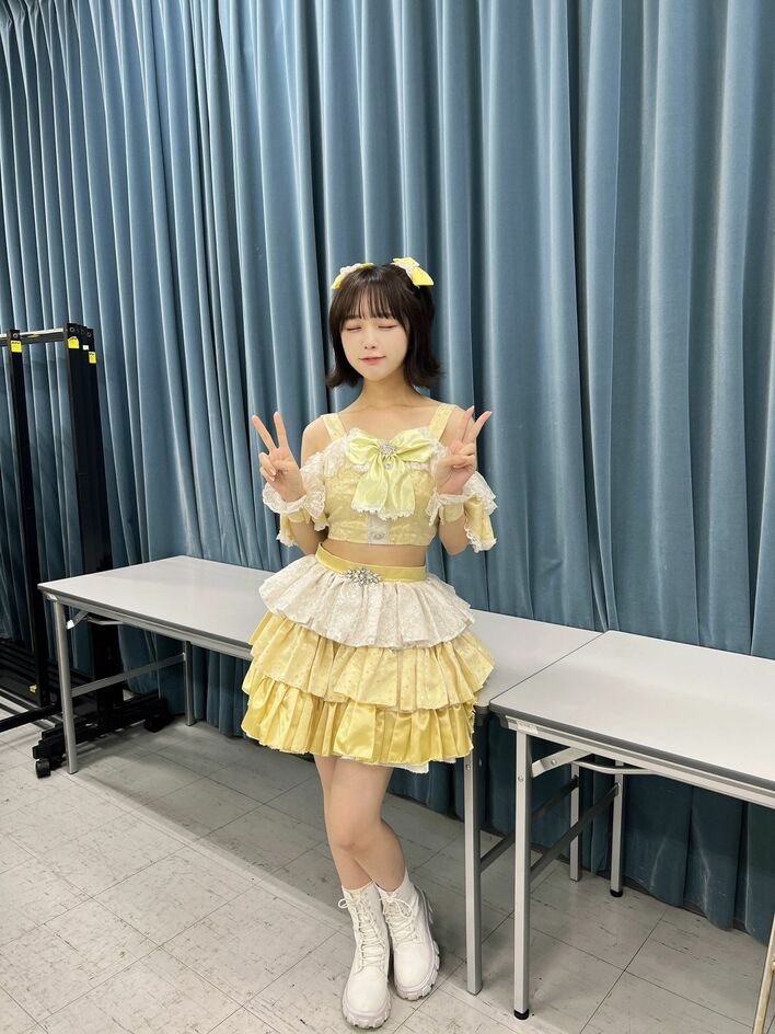 なえなのさんは「夢のアイドルになれて嬉しかったです」とコメントし、ドラマでアイドルグループのセンター役を演じた際の、黄色の衣装を着て笑顔でピースサインをしているオフショットを公開。
