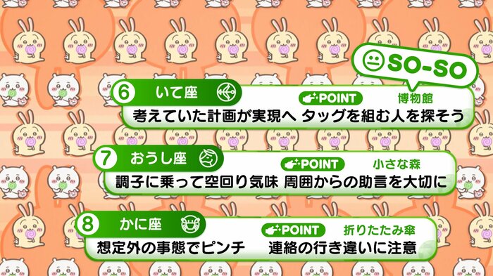 『めざましテレビ』で放送中の「ちいかわ占い」 テレビ放送がない日はお休みで、月~土:朝7時以降に更新予定です。