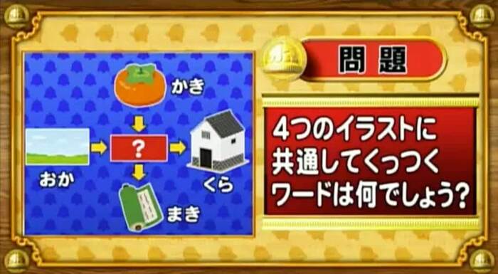次は、くっつきワードの問題。次の4つのイラストに共通してくっつくワードを答えてください。