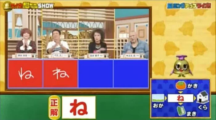 正解は「ね(お金・垣根・根暗・寝巻)」。岡田さんと伊勢さんが見事正解。