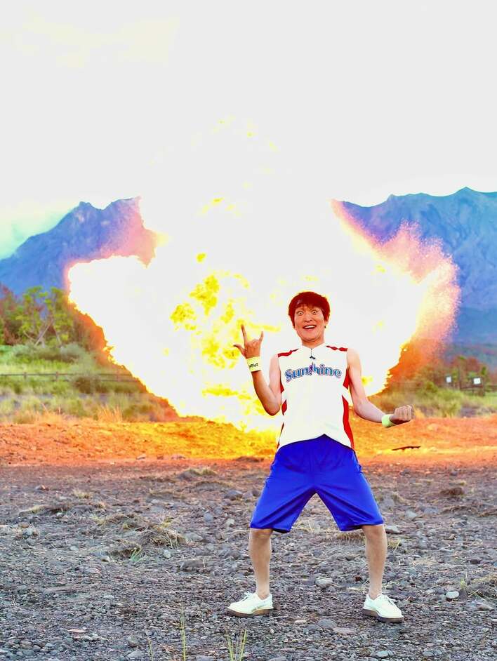 「サンシャイン千原」に!大爆発を背景になりきりコスチューム公開