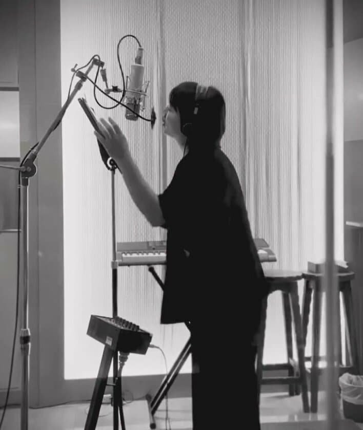 そんな氷川さんは、レコーディング風景の様子も公開し、手や体でリズムを刻みながら歌う様子や・・・