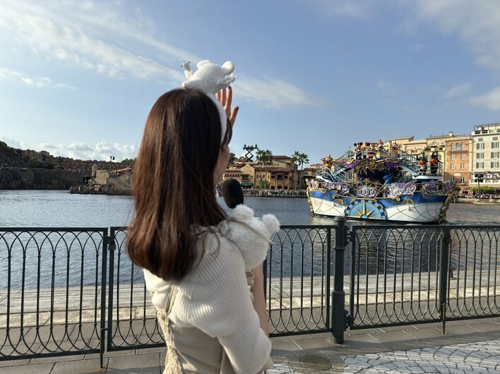 鈴木アナも近くまで船がやってくると、思わずディズニーの仲間たちに手を振ってしまいます。