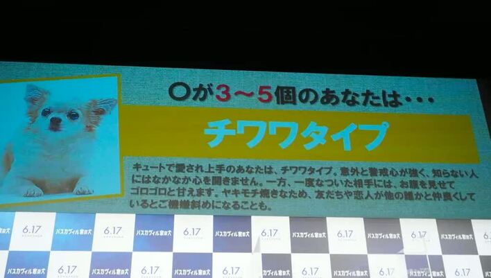 イベントでは、10個の質問に「○」「×」で答え、“犬性格診断”を行い「犬だったら何タイプなのか」を調べることに。