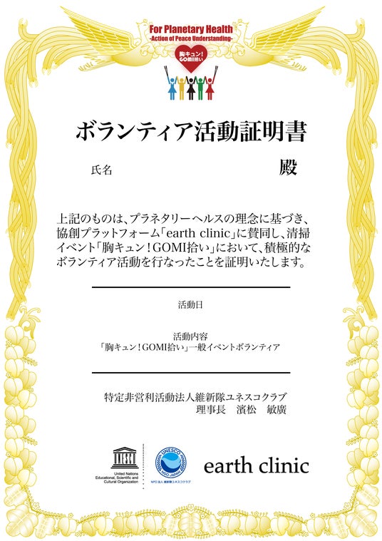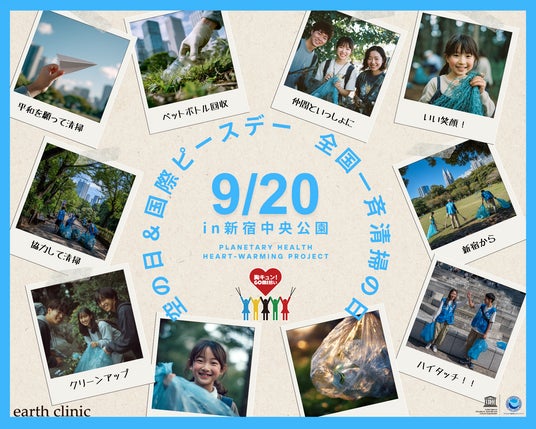 NPO法人維新隊ユネスコクラブ(理事長:濱松 敏廣)とTHE J.V.株式会社(代表取締役:小磯 卓也)が運営する協創プラットフォーム earth clinic は、プラネタリーヘルス(Planetary Health)の理念を体験できるクリーンアップイベント『胸キュン!GOMI拾い 2025 空の日&国際ピースデー in 新宿+オンライン』を下記のとおり開催します。