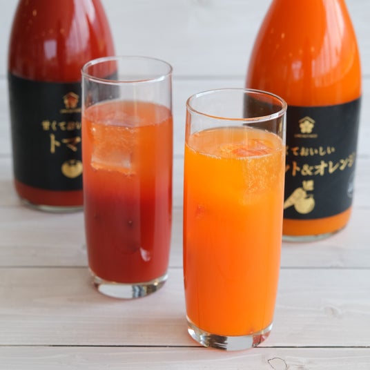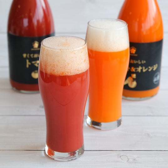 「甘くておいしいキャロット&オレンジ」 「甘くておいしいトマト」は、 様々な飲み方でお楽しみいただけます。ロックやソーダ割りなどの定番の飲み方の他、ビールで割る事により濃厚でフルーティな味わいのビールカクテルとしてもお楽しみいただけます。