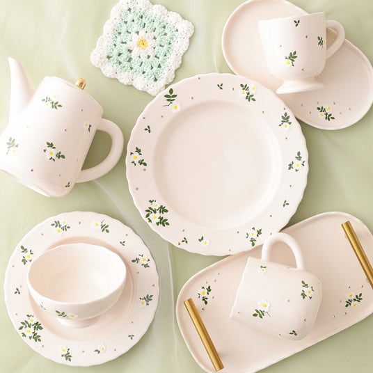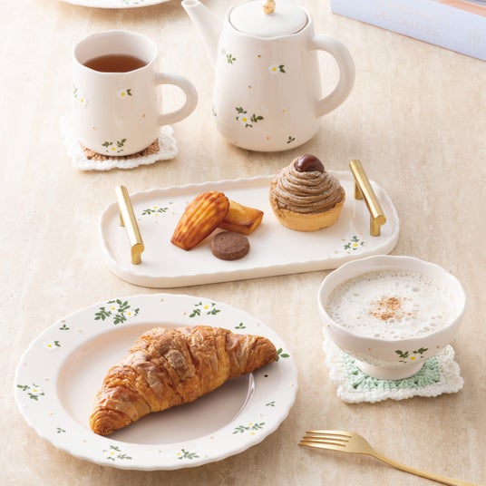 秋のスイーツとともに楽しむ、上質な“おうちカフェ”に。近年のファッショントレンドであるお花柄を、刺繍のような表現で仕上げました。セラミックならではの質感を生かしたFrancfrancらしいデザインで、お花のシルエットが刺繍のようにぷっくりと浮かび上がるように見えるのが特徴です。さらに、ゴールドのビーズを思わせる粒々を施し、絶妙な立体感を演出。日常のカフェタイムにファッション要素を取り入れてお楽しみいただけます。カフェセットやボウル、マグやティーポットなど、組み合わせて楽しめるアイテムや、「フルーロン」シリーズと合わせてコーディネートできるお花柄アイテムも揃えています。秋の味覚をトレンド感のあるデザインで楽しめる、上質な“おうちカフェ”を叶えます。