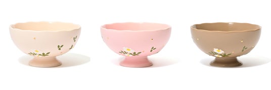 脚付きのボウルです。フルーツやクッキーなどのお菓子を盛りつけたり、カフェオレボウルとして使用したりと、様々なシーンで活躍します。ティータイムにも、コーヒータイムにもぴったりです。