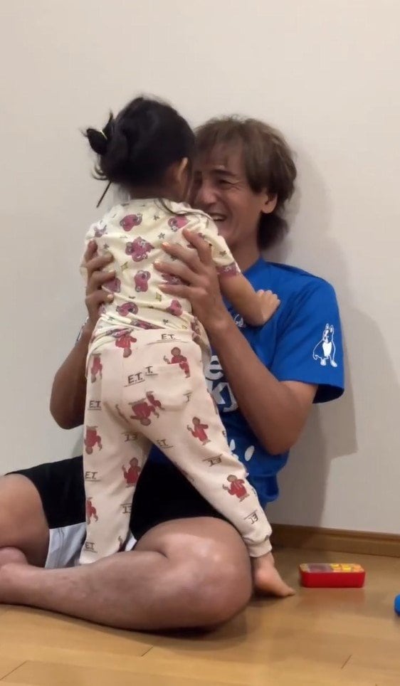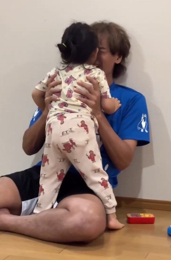 先月の投稿では「癒し♡パパと娘のいちゃつきタイム」とつづり、本並さんと“ぷくぷくちゃん”が仲良くじゃれ合っている様子を公開。