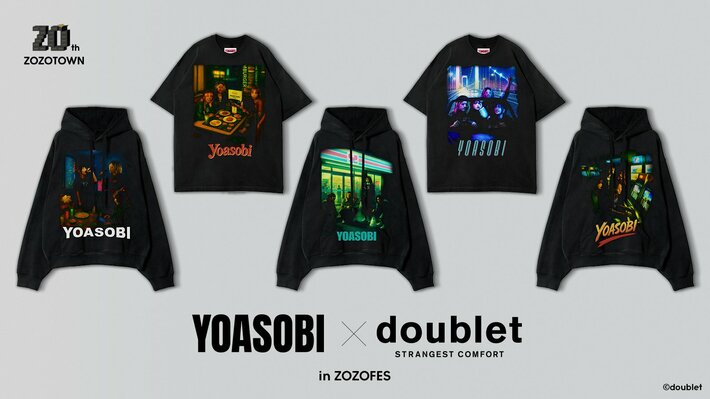 音楽ユニット「YOASOBI」とファッションブランド「doublet」がコラボレーションしたアイテムコレクション「NIGHT OUT WITH YOASOBI / YOASOBIと夜遊び」を、10月13日(月・祝)に開催するZOZOTOWN20周年記念イベント「ZOZOFES」DAY2の会場で販売します(※)。なお、会場での販売は10月13日(月・祝)限定で、購入にはZOZOFES DAY2の公演チケットが必要です。