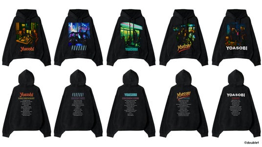 本コレクションは、「夜遊び」をテーマにデザインしたTシャツとフーディーの全10型のアイテムです。深夜のカラオケで声が枯れるまで歌い、コンビニ前で取り留めもない話に笑い、ゲームセンターで夢中になって競い合い、ファミレスで夜明けまで語り合い、ハンドルを握って街を抜け出す。そんな誰もが一度は経験したことのある“どうでもよくて、でも忘れられない夜”の瞬間を服に刻み込み、「夜遊びのユニフォーム」として表現しました。YOASOBIが音楽で物語を紡ぐように、doubletは服でその夜をもう一度よみがえらせます。