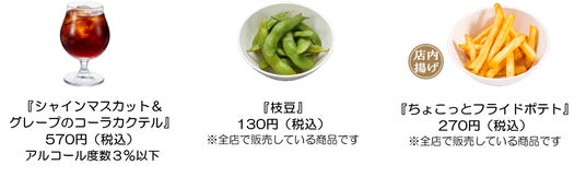 ウーロン茶の香ばしさとシャインマスカットの甘みが調和した爽やかな一杯や、カルピスのやさしい酸味とフルーティーな甘みが広がる味わい、グレープのコクとコーラの刺激が弾けるユニークな組み合わせなど、食中酒としてはもちろん、おつまみやサイドメニューと一緒に楽しめるラインアップとなっています。