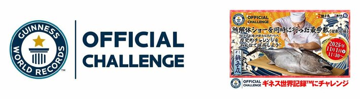 「鮪解体ショーを同時に行った最多数(複数会場)」のギネス世界記録(TM)へのチャレンジあたり、銚子丸公式アプリ「縁あぷり」会員の中から当日「証人者」として参加いただける方を各店舗3名ずつ募集します。日時:2025年11月1日(土)午前9時45分集合~午後2時頃解散