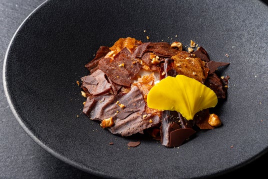 シナモンアイスを栗のエスプーマで包み、チョコレートチュイルで枯葉と銀杏の葉っぱを表現しました。秋ならではのシーズナルトリートをお楽しみください。