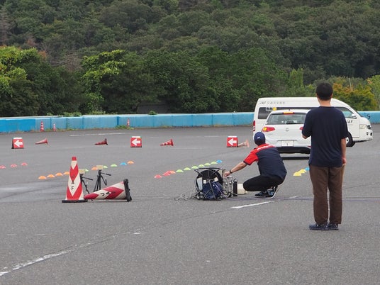 ・スラローム走行 設置されたパイロンの間を接触しないようにできるだけ速く通過