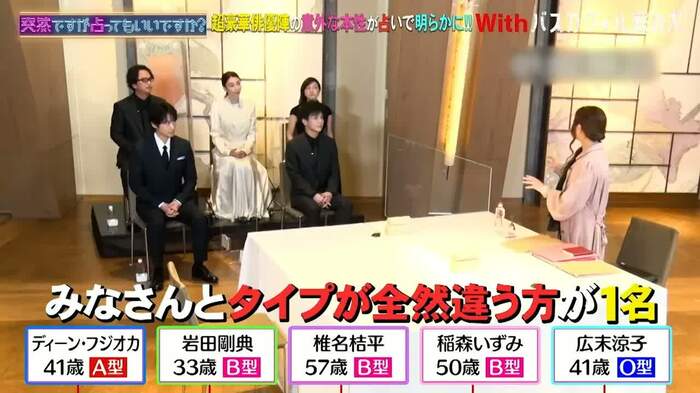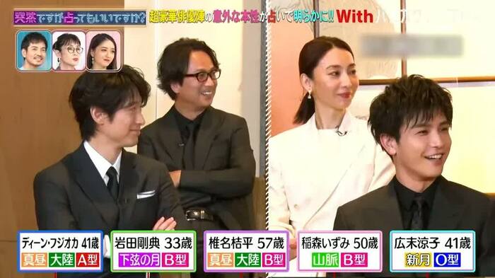 ディーン・フジオカさん&岩田剛典さん&広末涼子さん&稲森いずみさん&椎名桔平さんが、星ひとみさんに占われました。