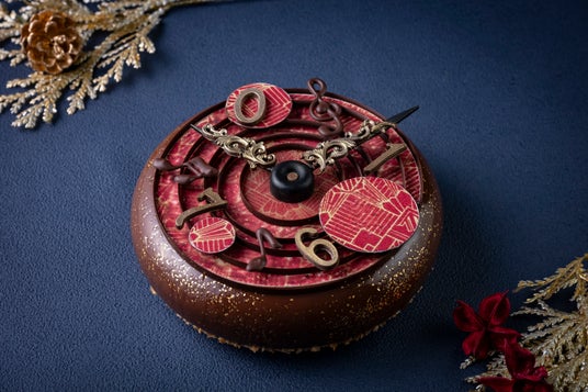 ピエール マルコリーニのオリジナルクーベルチュールチョコレートを2種類使用した「ハーモニー ドゥ ショコラ」は、時を奏でる時計をイメージ。また、ピエール マルコリーニのクリスマス&ホリデーコレクション 2025のテーマでもある“アール・デコ”とリンクさせ、デザインに取り入れました。なめらかな口当たり、甘さと苦みの絶妙なバランスをご堪能いただけるチョコレートケーキです。