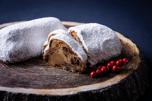 バター風味豊かな生地に、ドライフルーツやナッツを練り込んで焼き上げた、毎年定番のシュトーレン。