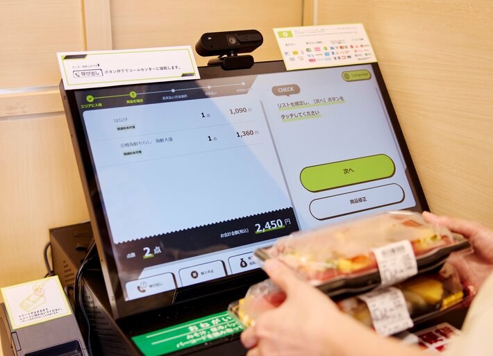 <店内で商品を選んでレジの前に立つと自動で画面が切り替わり、お会計ができる仕組み>