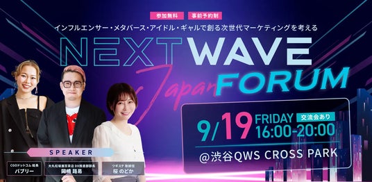 大丸松坂屋百貨店・ツギステ・CGO ドットコムは、国内でも、2025 年 9 月 19 日(金)渋谷 QWS CROSS PARK にて「NextWave Japan Forum~インフルエンサー・メタバース・アイドル・ギャルで創る 次世代マーケティングを考える~」 を開催します。