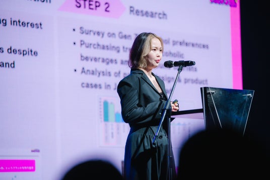 自治体や企業との事例を紹介するほか、岩手県の銘酒「南部美人」とコラボして誕生した「YUICHU」の事例を紹介し、ギャルの感性がビジネスに有益である点に訴求しました。