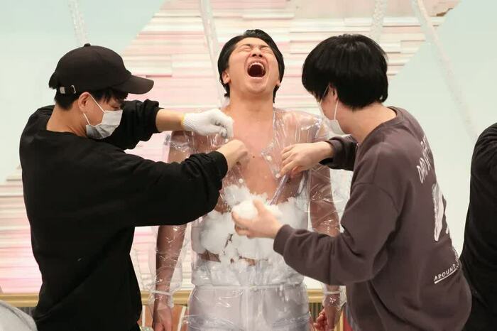 都築拓紀(四千頭身)は「頭まで雪でおおってもらって、鼻にニンジンさしてくれてもいいですよ!リアル“オラフ”になりますよ!」と気合たっぷり。しかし、腕の部分に雪が詰め込まれていくと、表情が一変する。「バラエティーとして成立しているんですか?」と涙するはめに…!?