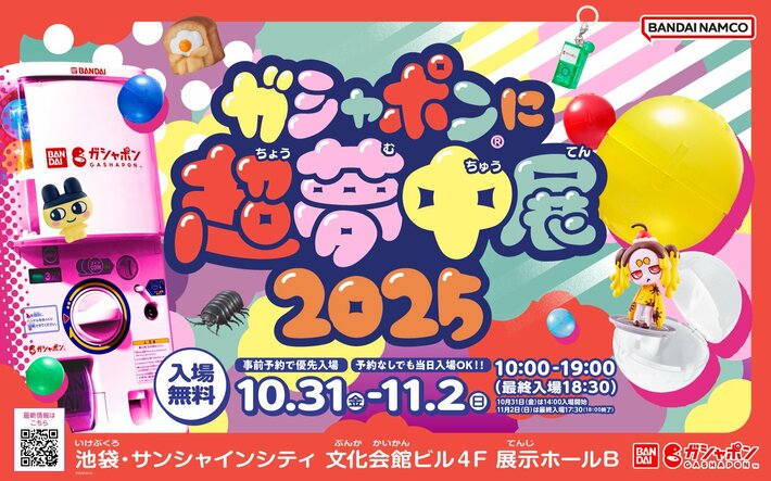 株式会社バンダイ ベンダー事業部(本社:東京都台東区)が展開するオリジナルカプセルトイブランド「ガシャポン(R)」は、ガシャポン(R)の魅力を体験できる大型イベント 「ガシャポン(R)に超夢中展2025」 を、2025年10月31日(金)~11月2日(日)の3日間、池袋・サンシャインシティ 文化会館ビル4F 展示ホールBにて開催いたします。