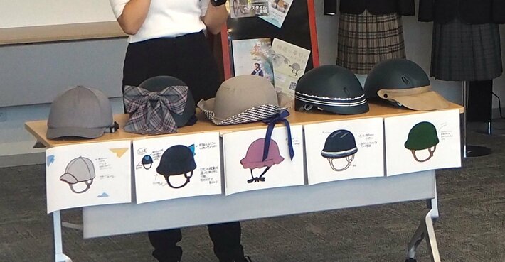 さらに、カタログ第2弾の制作に際し、プロジェクトの一環として大学生がデザインしたおしゃれなヘルメットの試作品も展示いたします。