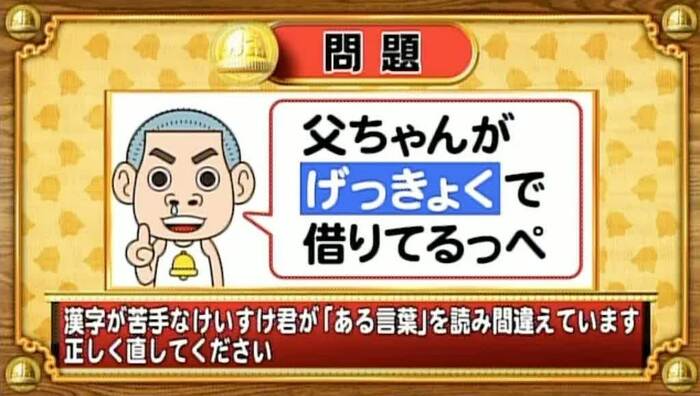 次は、読み間違いクイズ。漢字の苦手なけいすけ君が「ある言葉」を読み間違えています。正しく直してください。