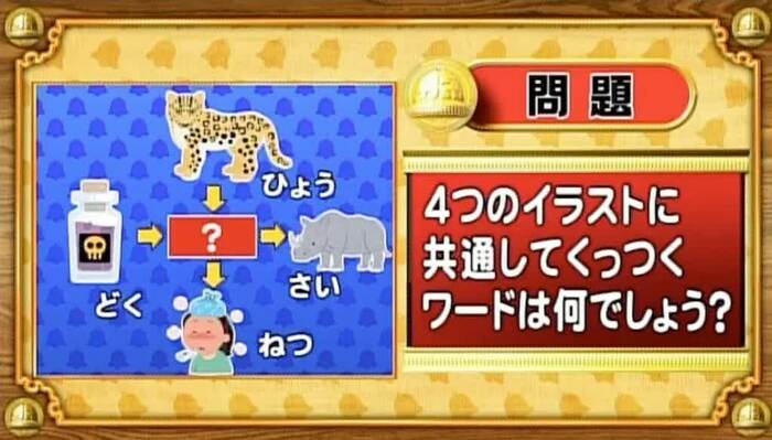 最後は、くっつきワードの問題。次の4つのイラストに共通してくっつくワードを答えてください。