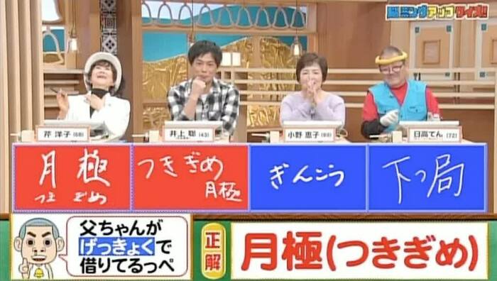 正解は「月極(つきぎめ)」。芹さん、井上さんが正解!